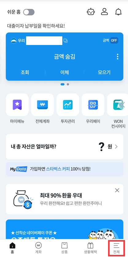 2. 가장 간단하고 편한 방법은 스마트 뱅킹(앱)으로 신청하는 것이다.